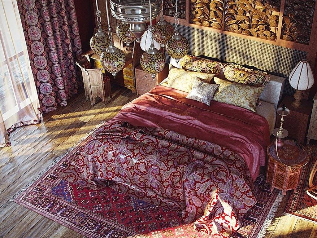 Это отдельно искусство – с яркостью и разнообразием важно не переборщить, иначе от уюта не останется и следа. Дело в том, что Восток любит красный цвет, который весьма негативно влияет на нервную систему и не способствует расслаблению после тяжелого трудового дня