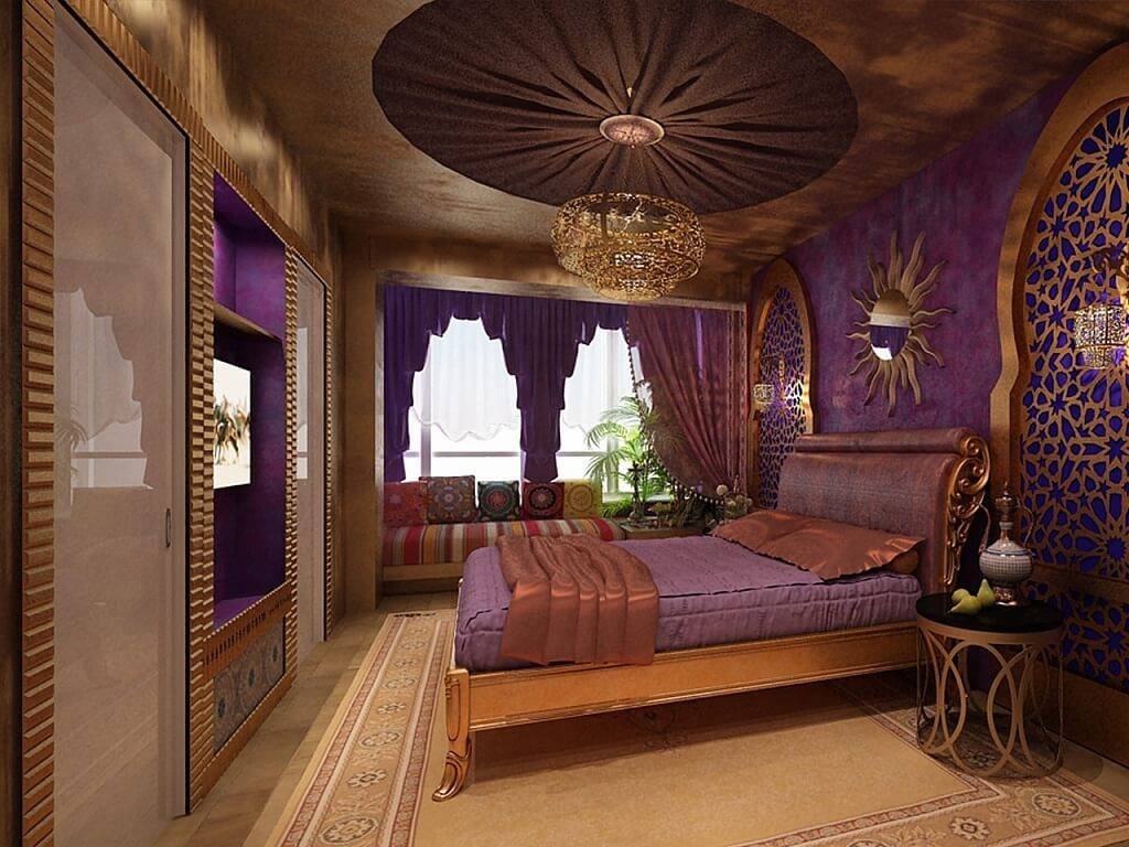 Восточный стиль характеризуется использованием богатой палитры цветов. Все оттенки сочные, яркие, но в то же время гармонично сочетающиеся между собой
