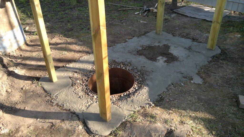 Заложена основа и фундамент будущего санузла на природе.