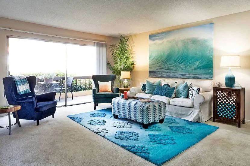 Как мы уже указывали, что морской интерьер — прохладный, потому большая часть оттенков будет из холодного спектра: