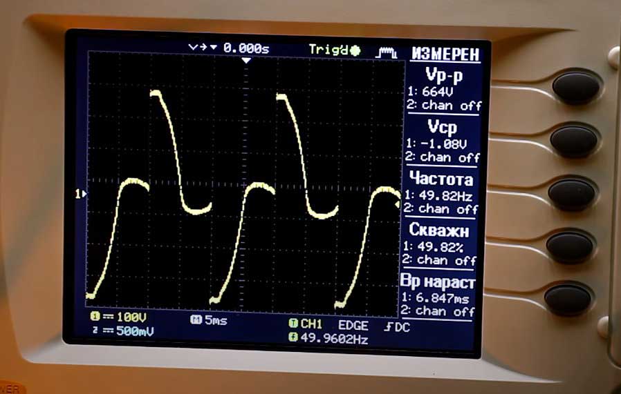 У большей части таких диммеров на выходе несинусоидальный сигнал, а секции синусоиды, «отрезаны» имеющимся ключом.