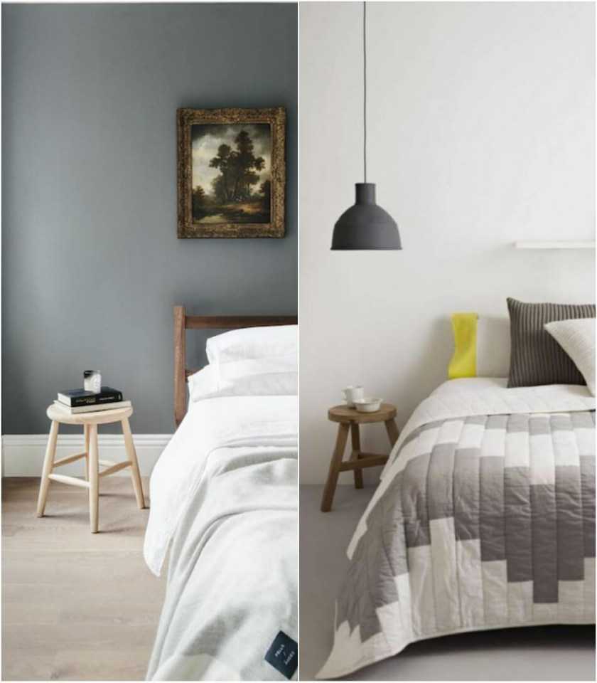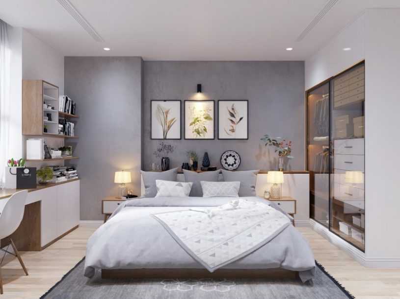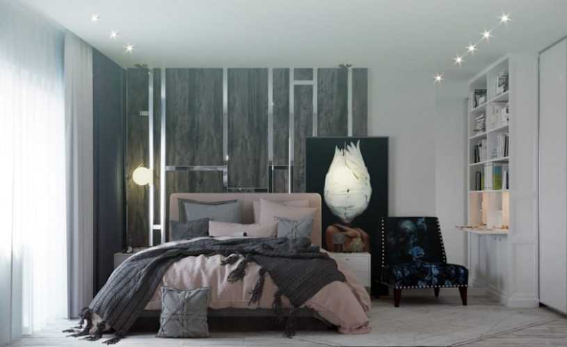Очень часто белые цвета заменяются на голубые или серые оттенки. Первые придают комнате дополнительное очарование морозного ветра. Вторые наполняют спальню утонченной аурой.