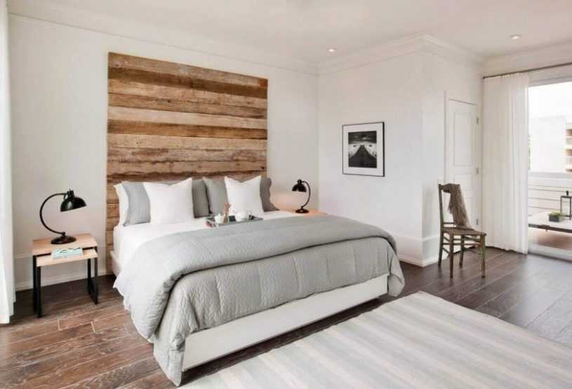 Основное отличие кровати в скандинавском стиле – грубая обработка каркаса и изголовья. Мебель не должна закрывать всё свободное место.