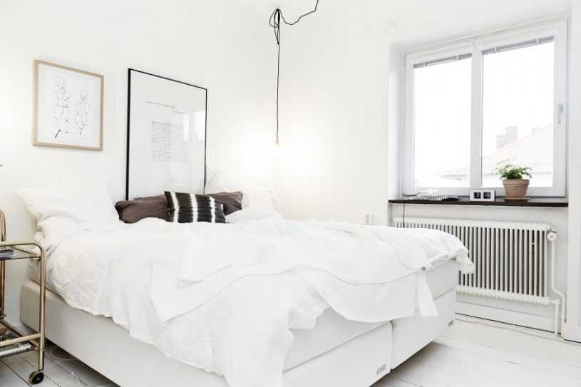 Спальня в скандинавском дизайне представляет собой просторную и светлую комнату с минимальным набором мебели. Главные условия обустройства: