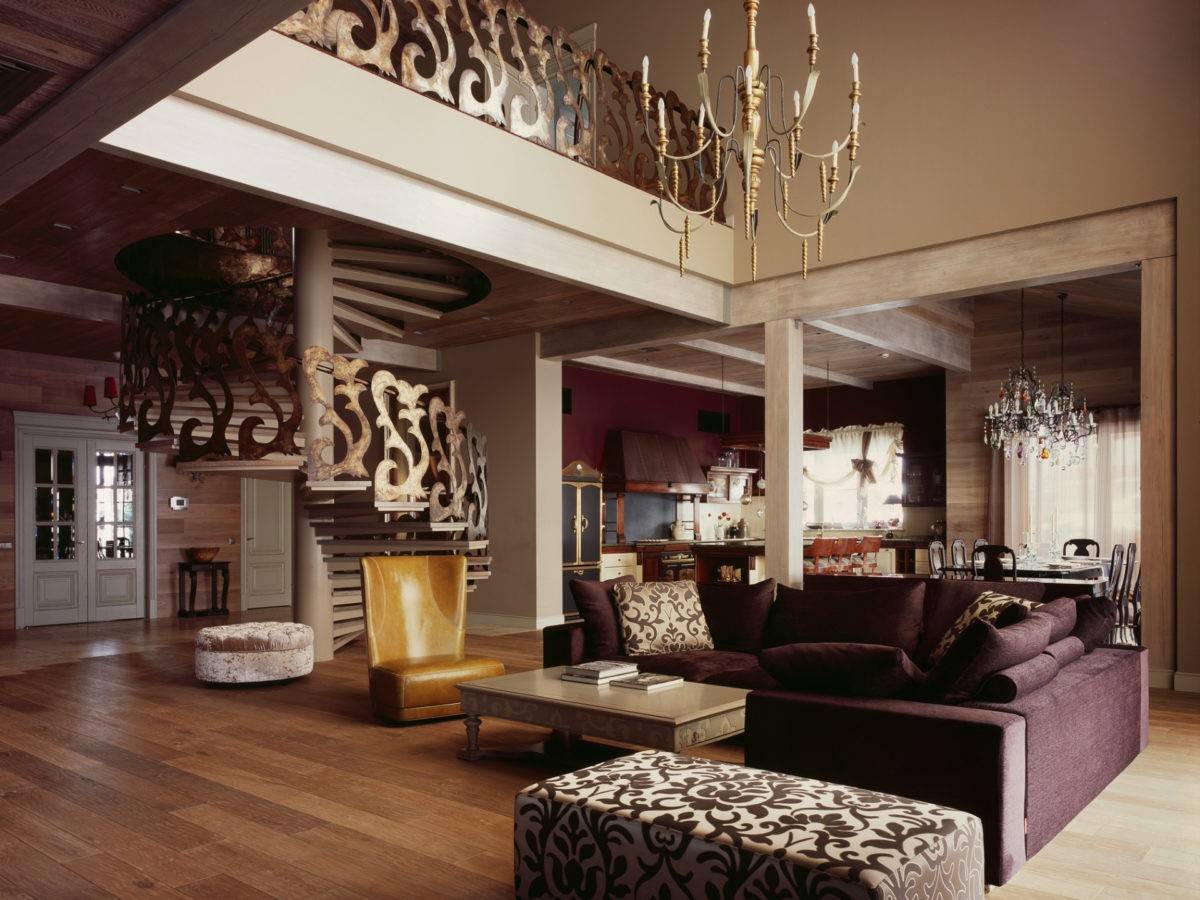 - Многоуровневость. Любители этой стилистики должны обязательно создать в помещении возвышенность.