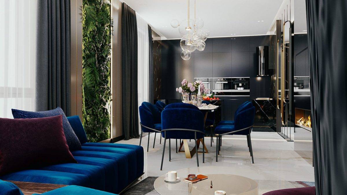- Присутствие свободы. Зачастую пространство организуется с помощью композиционных решений, зонирования помещения, установки акцентного освещения.