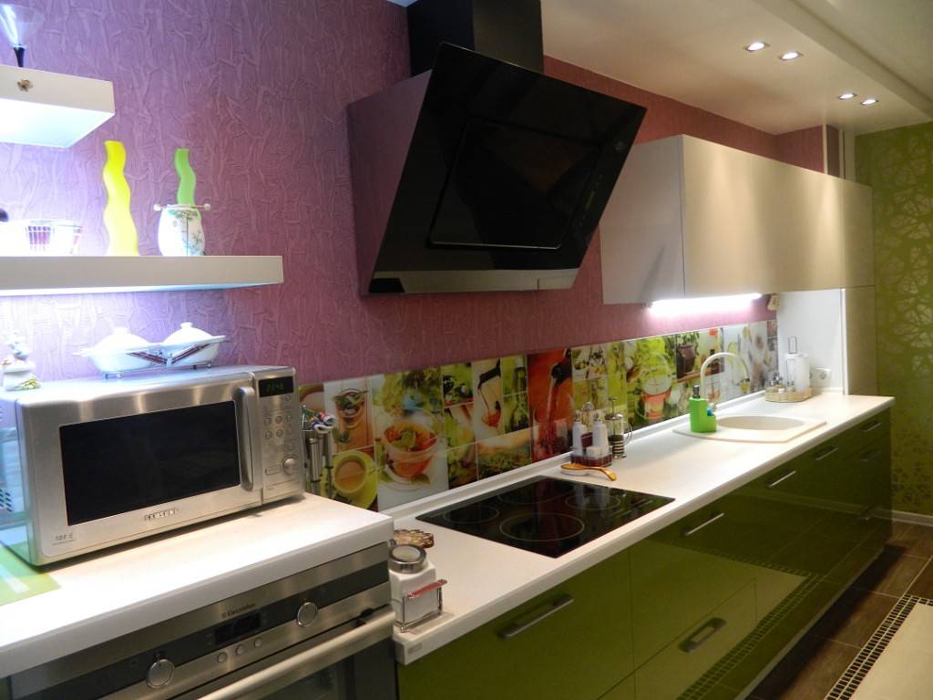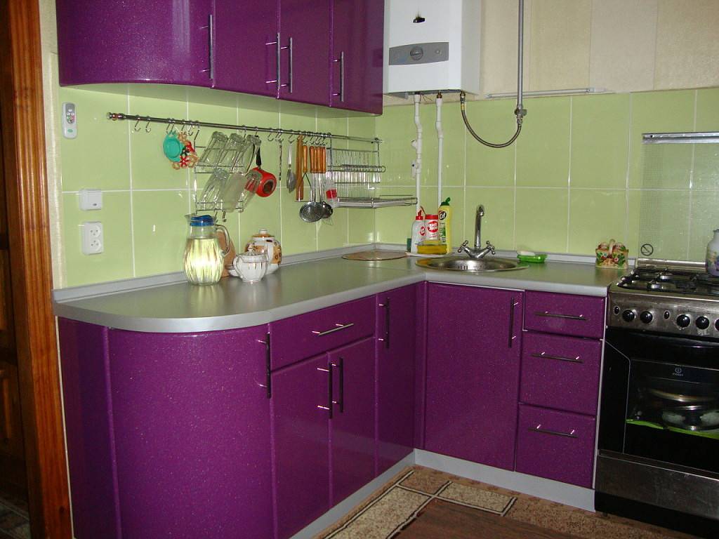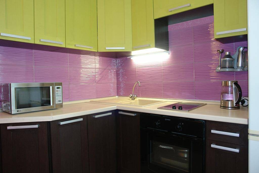 При этом следует придерживаться одного правила дизайна: оба эти яркие оттенки в равных пропорциях выглядят гармонично, если само помещение достаточно просторное. На маленькой кухне зелено-фиолетовая гамма будет выглядеть слишком пестро, навязчиво и даже безвкусно.