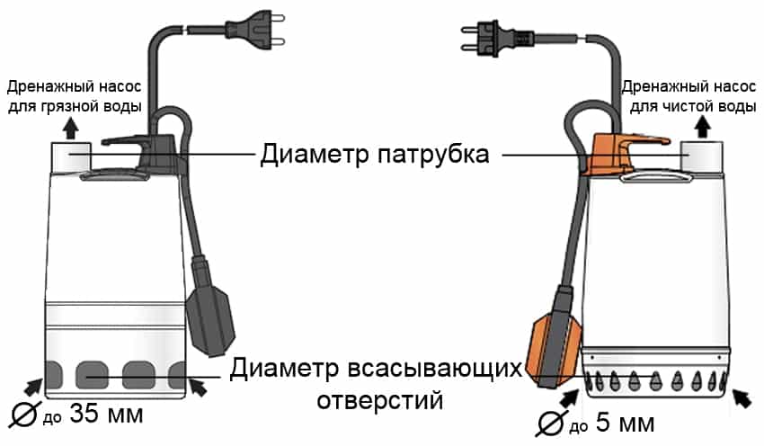 Дренажное оборудование может работать только со слабозагрязненными жидкостями. Величина твердых примесей в зависимости от разновидности аппарата варьируется от 3 до 40 мм.