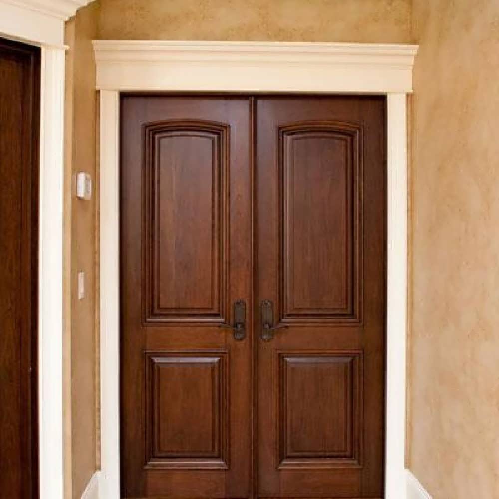 Двери двойные распашные межкомнатные производятся глухими и остекленными. Наиболее востребованы двустворчатые конструкции, имеющие дизайн в классическом стиле. Как и обычные, двойные дверные блоки выпускаются из различных материалов и имеют различную стоимость в зависимости от вариантов отделки. Кроме прямоугольных дверных полотен используются и арочные конструкции. Если в интерьере предусмотрена фрамуга над дверным проемом, то арочной может быть именно не открывающаяся верхняя часть – фрамуга, а створки иметь обычную форму.