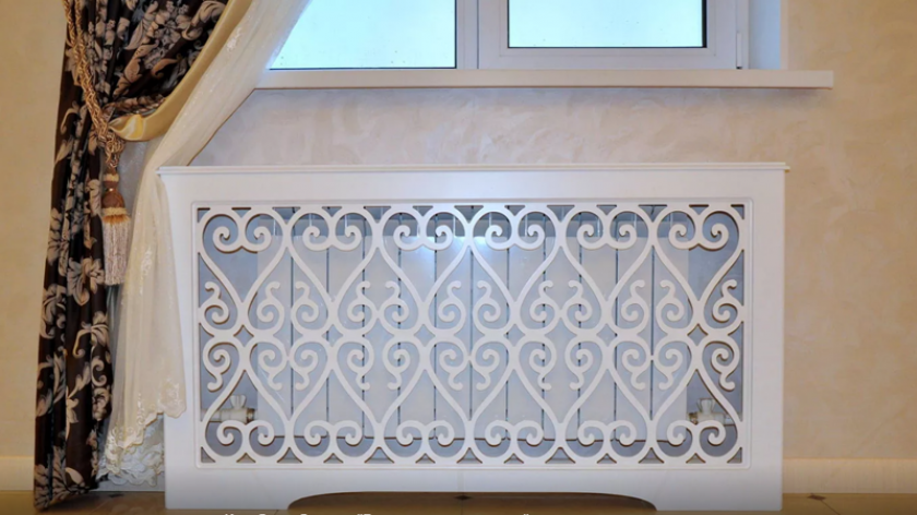 Разработка технологии изготовления МДФ-панелей позволила получать более дешевые ограждения для батарей, чем экраны из натуральной древесины. Из этого качественного материала удается изготовить решетки любой формы и цвета. Особой декоративностью обладают прорезные экраны, которые в зависимости от предпочтений заказчика могут подходить под интерьер или, наоборот, контрастировать с ним. С помощью программируемых станков удается воспроизвести любой эскиз рисунка со стопроцентной точностью. На заказ могут изготовить декоративные экраны для радиаторов отопления из МДФ-плиты по эскизу клиента.