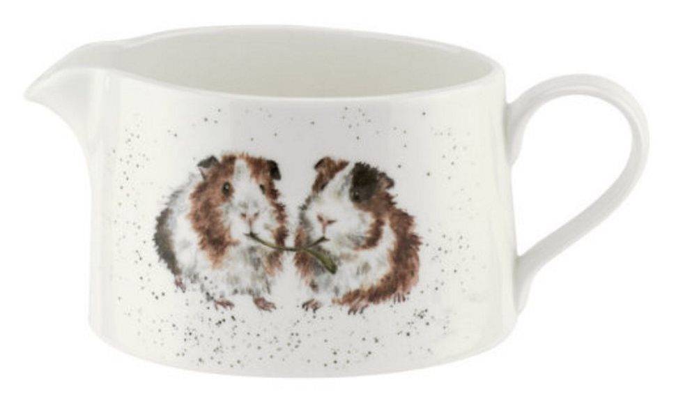 Этот соусник приковывает к себе восторженные взгляды многих покупателей. Речь идет о двух милых морских свинках, которые расположены на лицевой части конструкции. Для нанесения используется техника с применением акварели. Рисунок разработан именитой художницей и обладательницей огромного количества наград – Ханной Дейл. Для изготовления применяется тонкий костяной фарфор. Вместительность – 550 мл. Крышка производителем не предусмотрена. Носик узкий, аккуратный, в то время как ручка широкая и удобная. Отдельного внимания заслуживает описание, в котором указано, что изделие можно мыть посредством посудомоечной машины и подогревать в микроволновой печи.