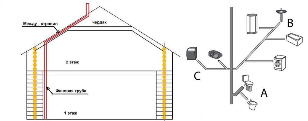 Варианты прокладки фанового стояка, материал труб и выходные отверстия различаются Источник sovet-ingenera.com