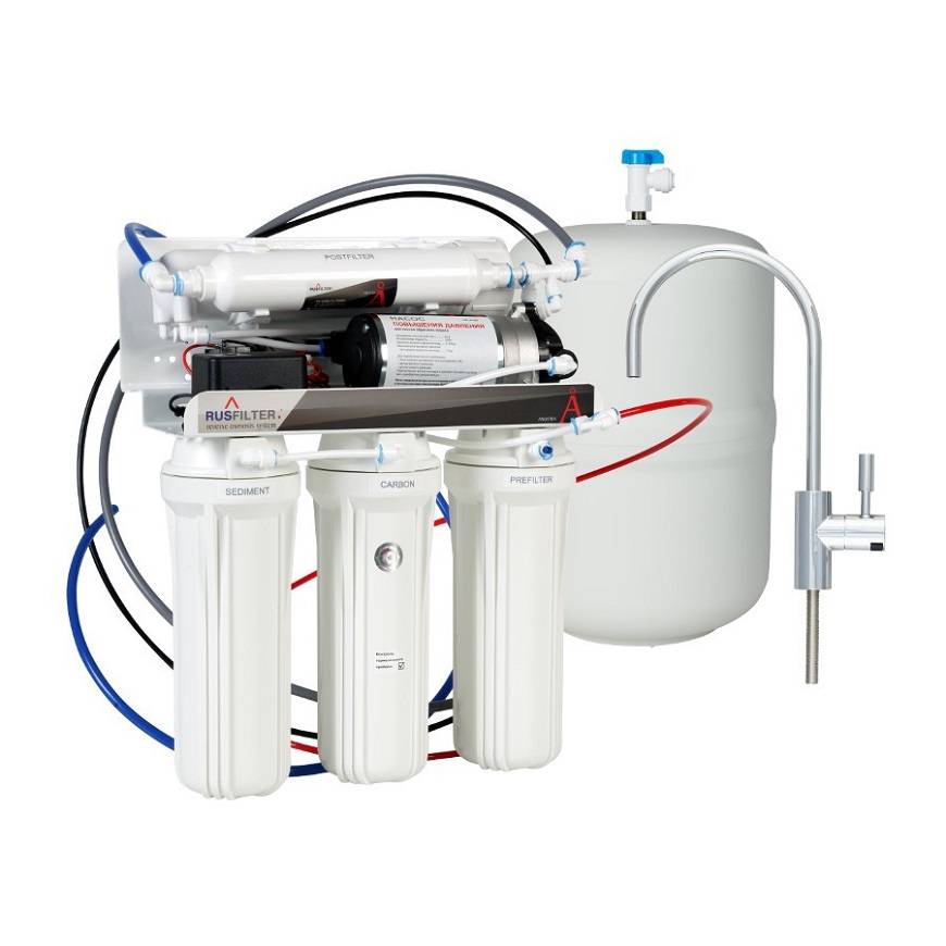 5-ступенчатая система очистки воды с обратноосмотическим фильтром, тремя предфильтрами. Это