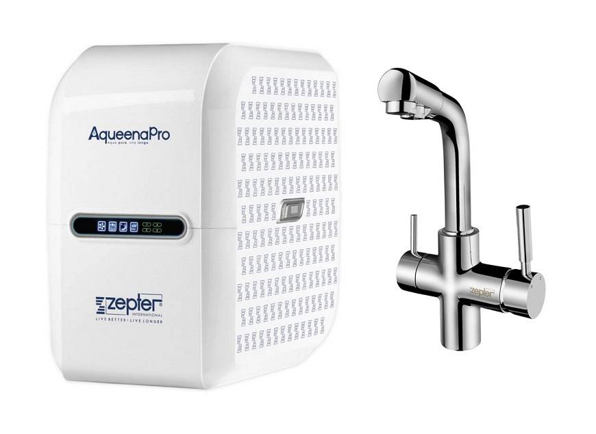 Прямоточная система обратного осмоса в очень компактном исполнении. Размещение – под кухонной раковиной. Снабжена помпой Jet X855 с электронным чипом, места занимает очень мало. Исключает появление на посуде накипи и риска биологического заражения воды. Быстросъёмная мембрана с большой пропускающей способностью, комбинированный постфильтр + угольный кондиционер.