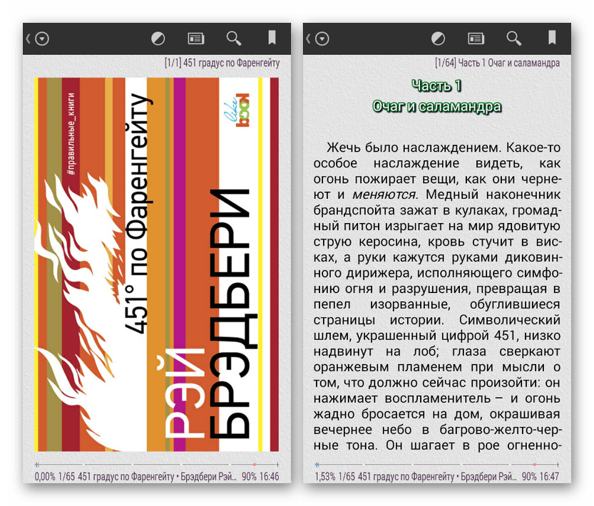Поддержка иллюстраций и изображений. Издания в формате FB2 имеют обложку и картинки по ходу повествования (если они есть);