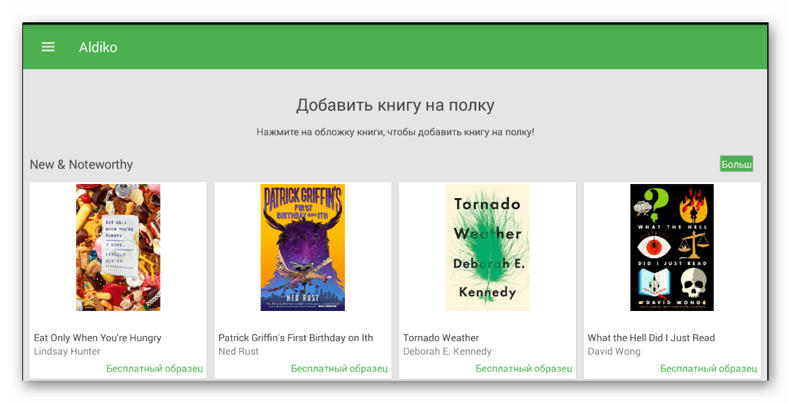 - Можно скачивать книги со специальных площадок: в каждом ридере предустановлен книжный магазин (там можно найти и бесплатные книги).
