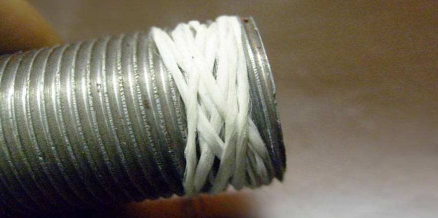 Уплотнительная нить тоже имеет множество недостатков. Она неустойчива к вибрациям и не может эксплуатироваться в среде чистого кислорода, как и фум-лента. Чтобы обеспечить сцепление нити с поверхностью необходимо будет обработать резьбу до получения шероховатости.
