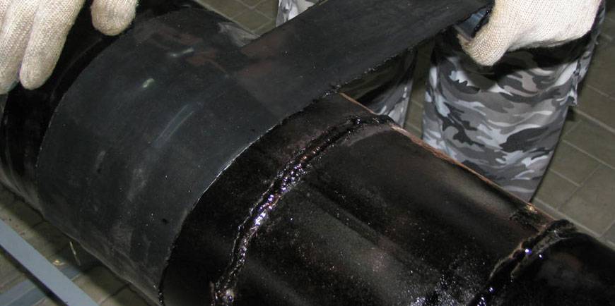 Герметизирующие самоклеящиеся ленты. Полосы шириной 3-15 см производят из битума или каучуков. Их могут армировать стеклосеткой, покрывать защитным слоем из алюминиевой фольги. Применяют для усиления муфтовых стыков, мест врезок или заклеивания трещин в коммуникациях.