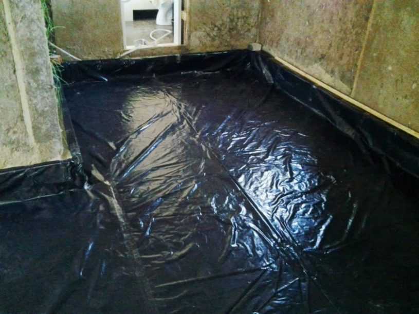 - На подготовленном полу расстилают рулоны с гидроизоляционным материалом, чтобы он выпрямился.