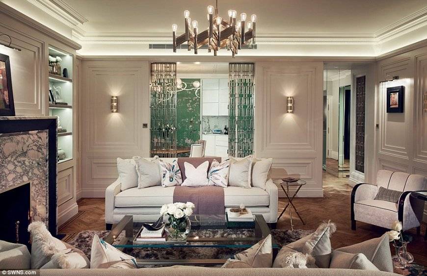 Гостиная является излюбленным помещением для арт-деко, по крайней мере, именно эта комната чаще всего оформляется в подобном дизайне. Сама идея гостиной отлично соответствует философии арт-деко, которая рассчитана на внешние эффекты для зрителей.