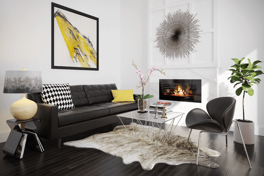 Современную гостиную трудно представить без качественного, функционального оборудования – домашнего кинотеатра или стереосистемы. В этом случае подбирается техника черного цвета, которая будет гармонировать с контрастной отделкой окружающей обстановки.