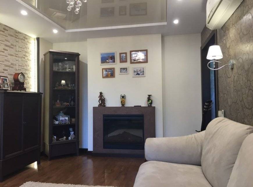 - Для современной гостиной это может быть большой телевизионный экран в причудливой раме, или антикварный рояль на подиуме. Хорошо выглядят современные интерьерные элементы, например, биокамин или водяная стена с подсветкой.