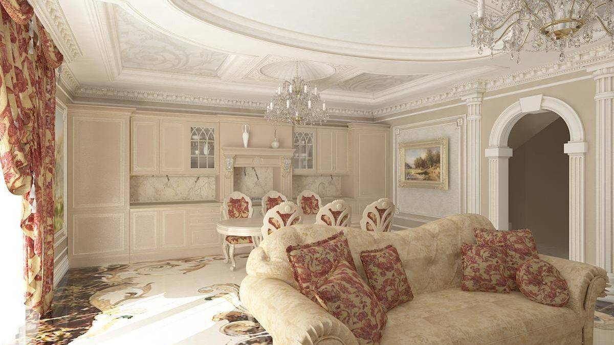 Кухня-гостиная в классическом стиле