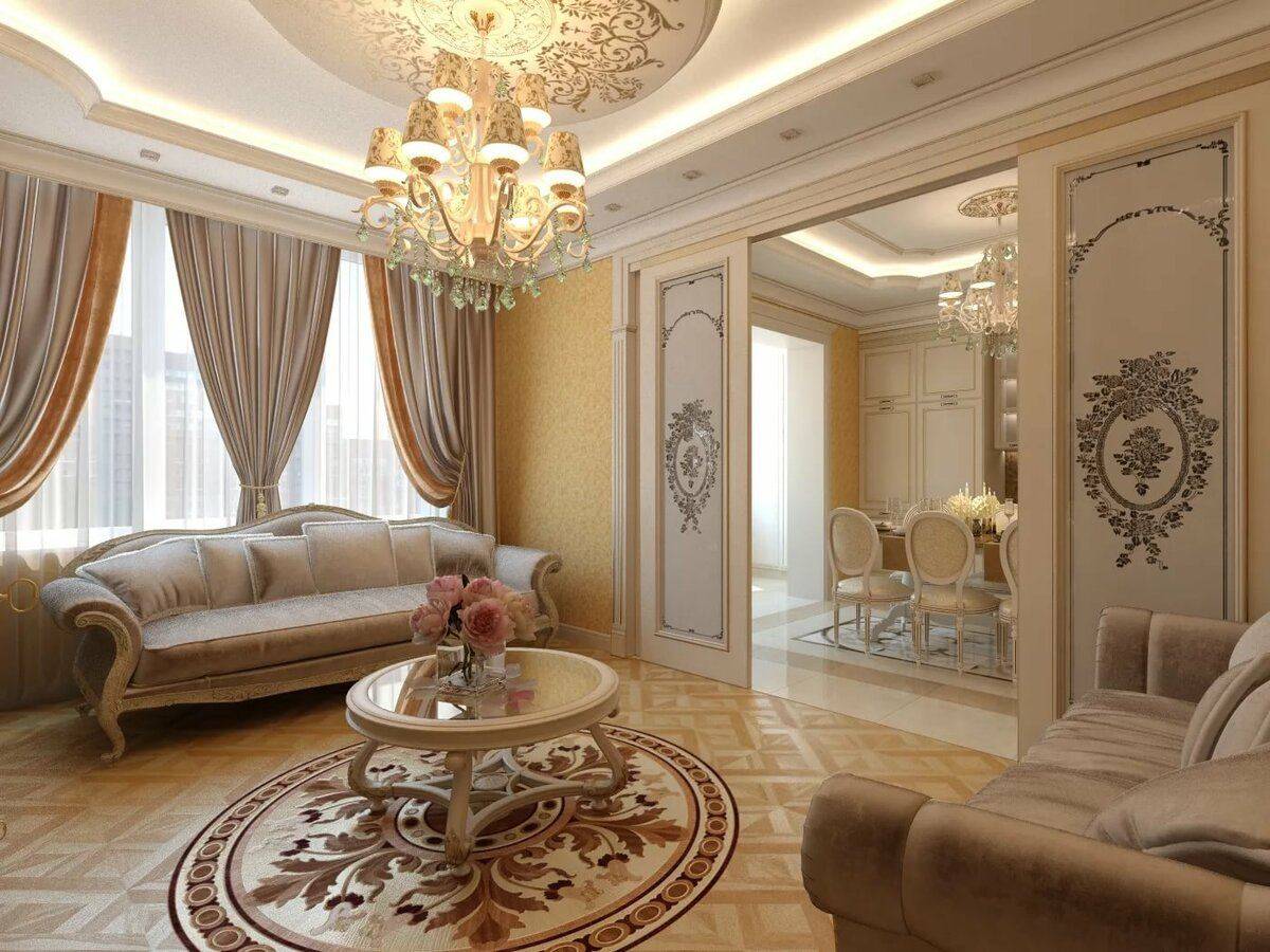 Роль текстиля в гостиной-классике: шторы и другие стилистические элементы