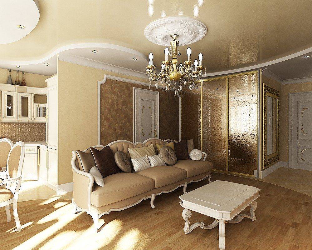 Единое пространство. Касаемо деления на зоны в интерьере квартиры в современной классике, следует избавиться от большого количества маленьких помещений и создать студию. Такое комбинированное по функционалу помещение может иметь плавные переходы из одной зоны в другую. Прекрасным способом зонирования станут колонны и полуколонны, а двери заменятся арками.