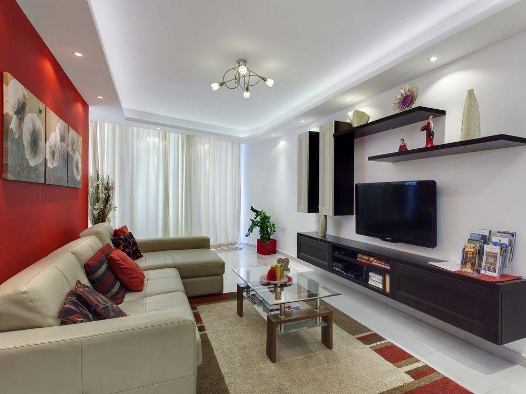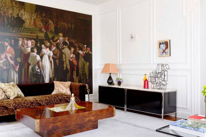 Для оформления фона гостиной откажитесь от ярких красок