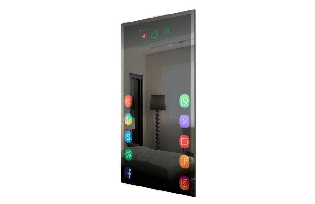 Smartsy. Девайс работает с помощью команд голосовому помощнику или нажатия на сенсорный экран. Умное зеркало в ванную или в другую комнату подключается к смартфону пользователя. Все данные передаются через встроенный Wi-Fi модуль или Bluetooth.