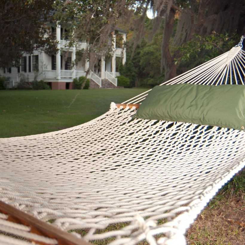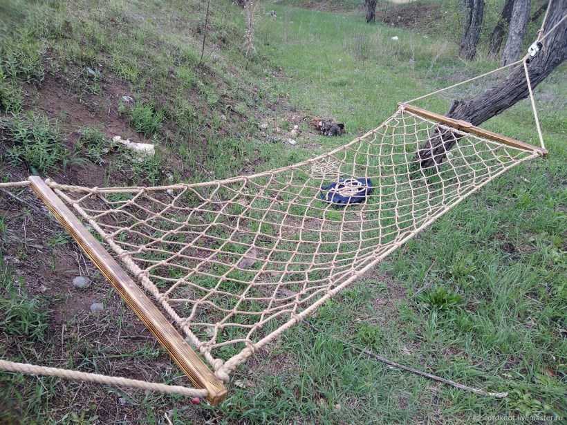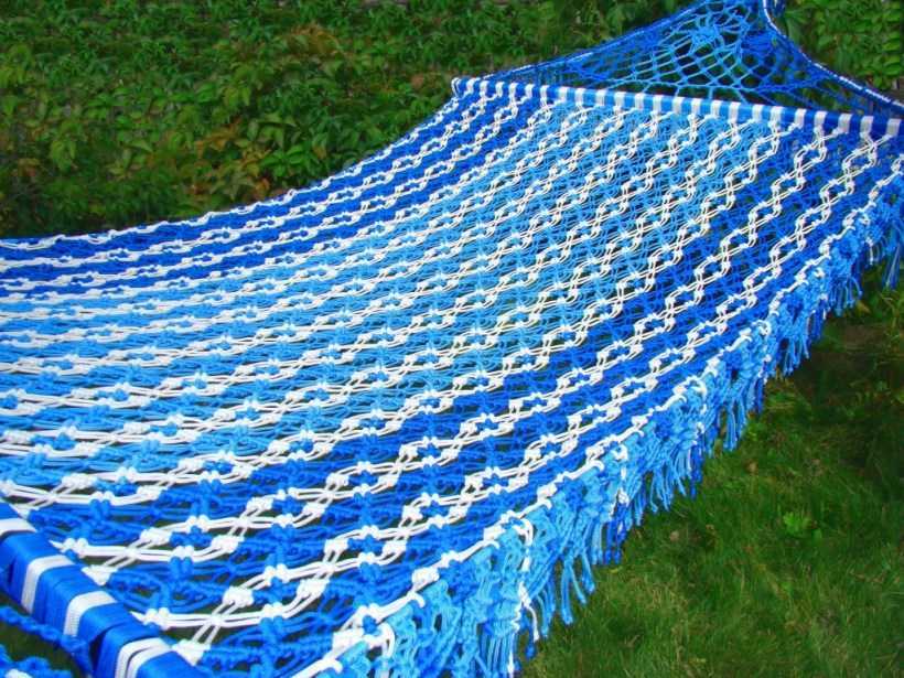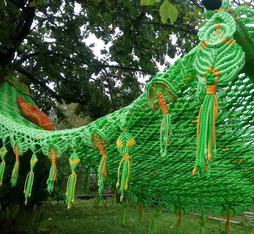 Плетение гамака своими руками возможно только по технике Макраме. Часто она используется для создания надёжных рыболовных сетей своими руками. На практике данное искусство гарантирует качество и надёжность узлов на 2-3 года.