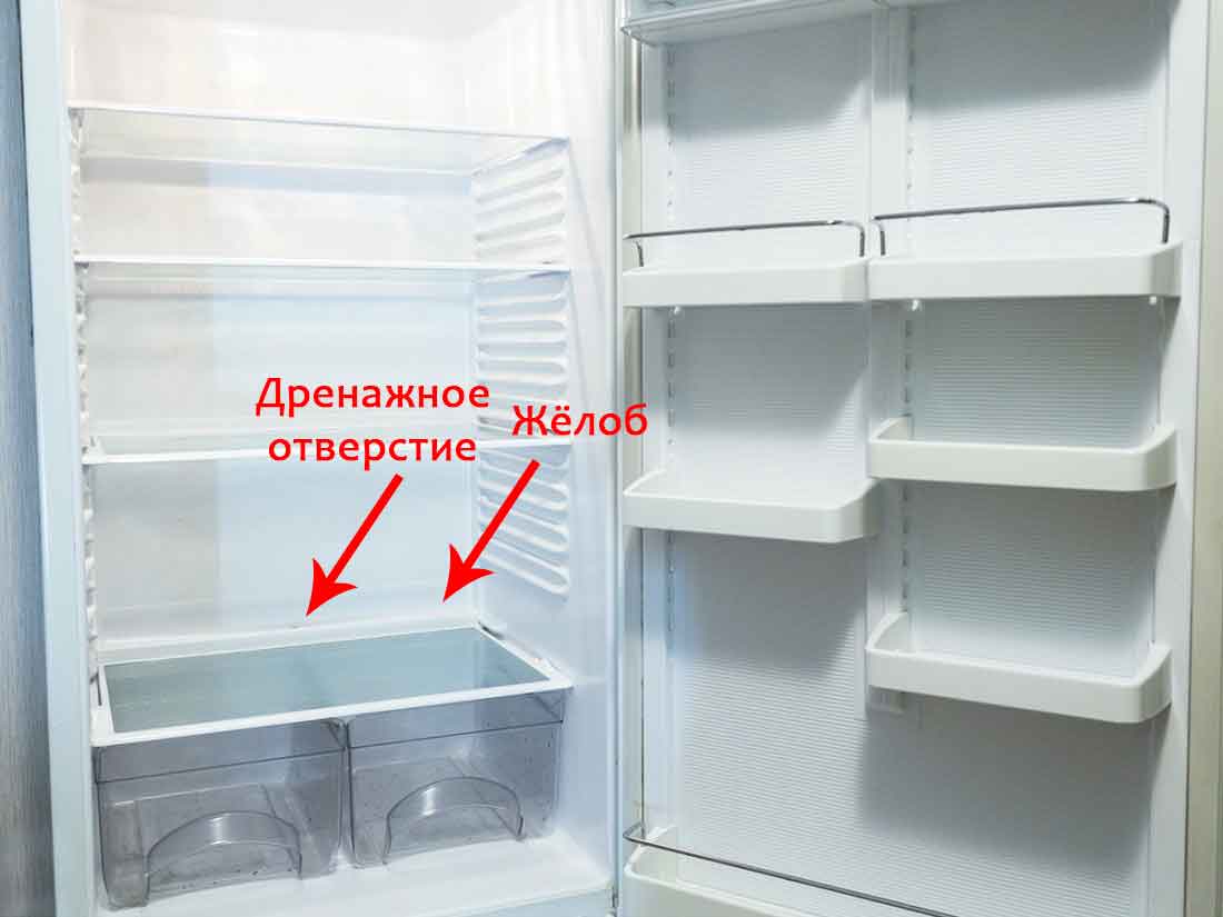 - Забился дренаж морозильника. Вы увидите на стенках камеры много льда, который тает и стекает в специальный отсек. Но чистить дренаж лучше доверить мастеру.