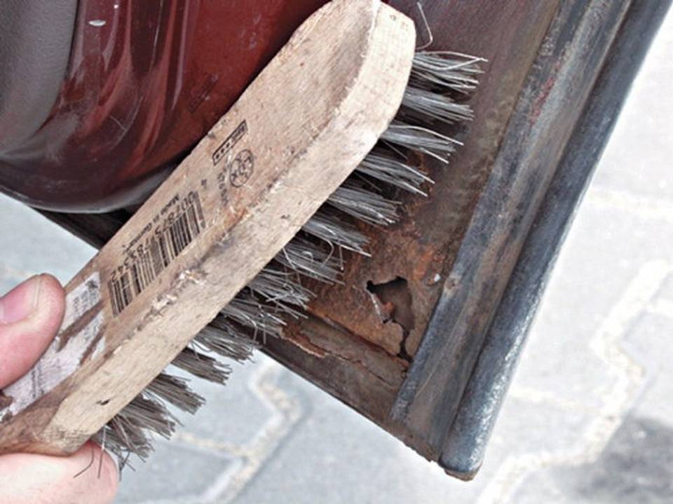 Такой способ подходит для небольших поверхностей и только для тонкого слоя ржавчины. Его удобство в том, что щеткой можно подлезть в труднодоступные места, например, почистить внутреннюю поверхность чугунной батареи (для широких зубков). Однако отодрать толстый слой ржавчины не получится.