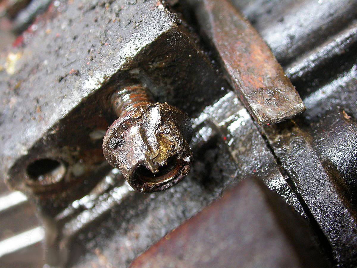 Операцию необходимо производить с предельной осторожностью, так как возможно испортить грани шляпки, что станет еще большей проблемой. Обычно заржавевшие болты заменяются новыми, при отсутствии такой возможности, следует удалить загрязнения и следы коррозии, смазать специальной смазкой резьбу