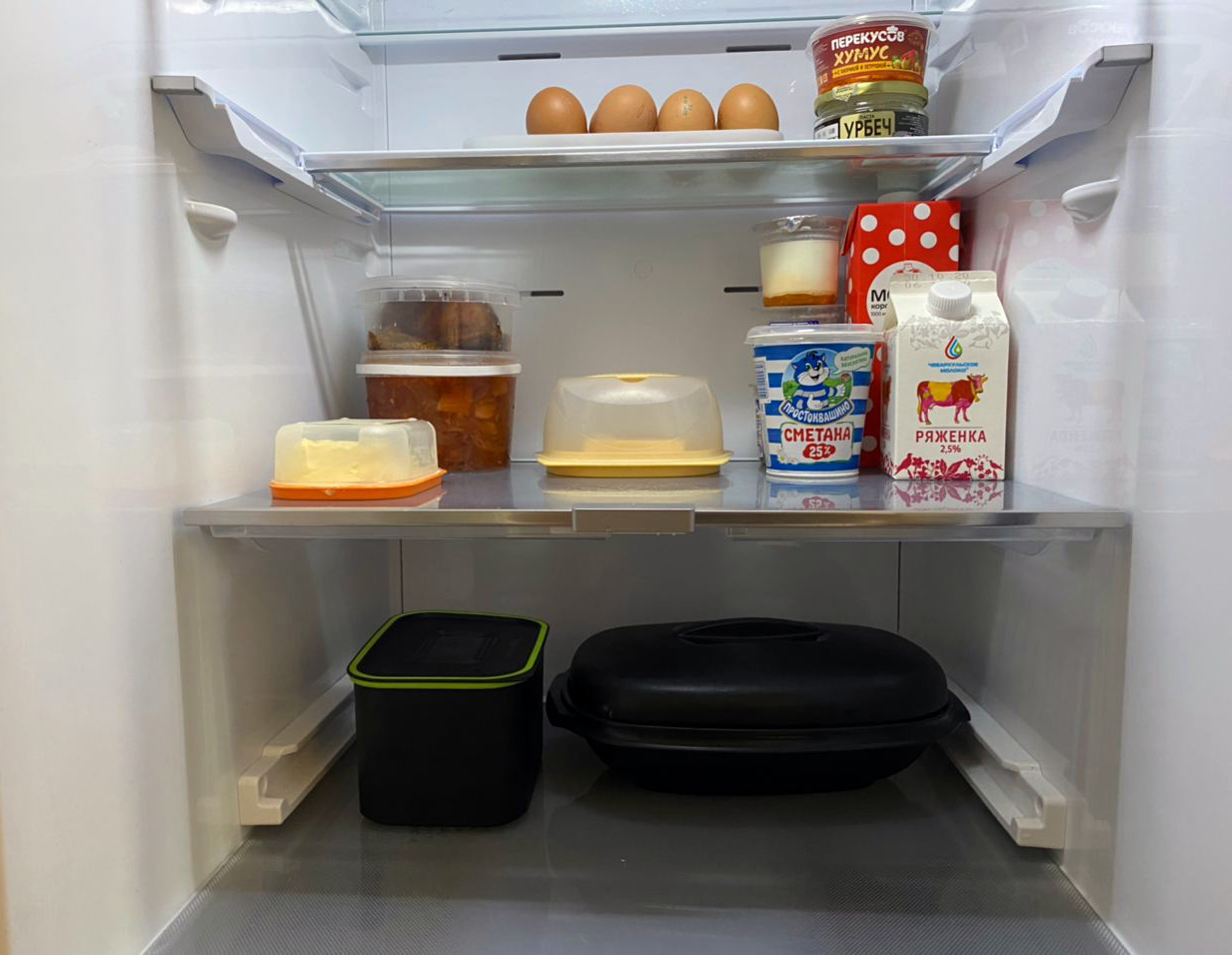 Это место для готовых к употреблению продуктов. Туда нужно убирать кисломолочные продукты, колбасные изделия, готовые блюда, в том числе салаты и закуски.