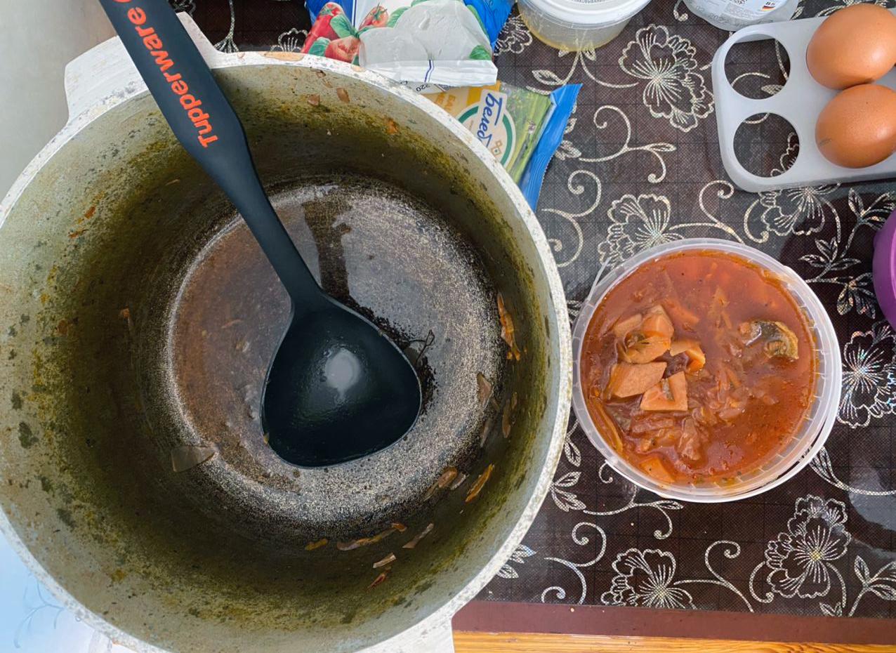 Молоко и яйца хранятся неправильно, готовая еда в кастрюлях занимает много места, в соусах бардак