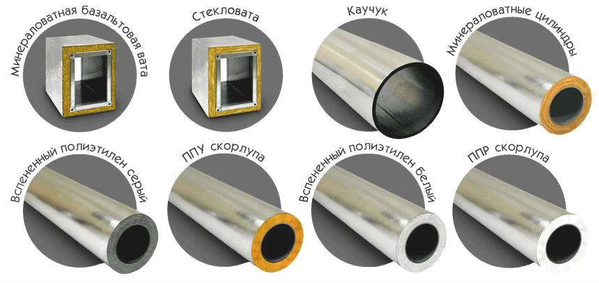 Чтобы теплоизоляция любых: пластиковых, металлических и разных других вентиляционных труб оказалась достаточно эффективной, но и не ударила по бюджету – следует правильно выбрать утеплитель. Сегодня существует достаточно богатый выбор материалов для этого, как доступных так и достаточно дорогостоящих. Самыми рекомендуемыми вариантами являются следующие виды утеплителя: