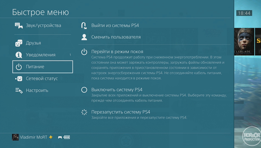 Для перезапуска достаточно посетить быстрое меню, «питание» и выбрать «перезапустить систему PS4». Однако этот вариант работает не всегда.