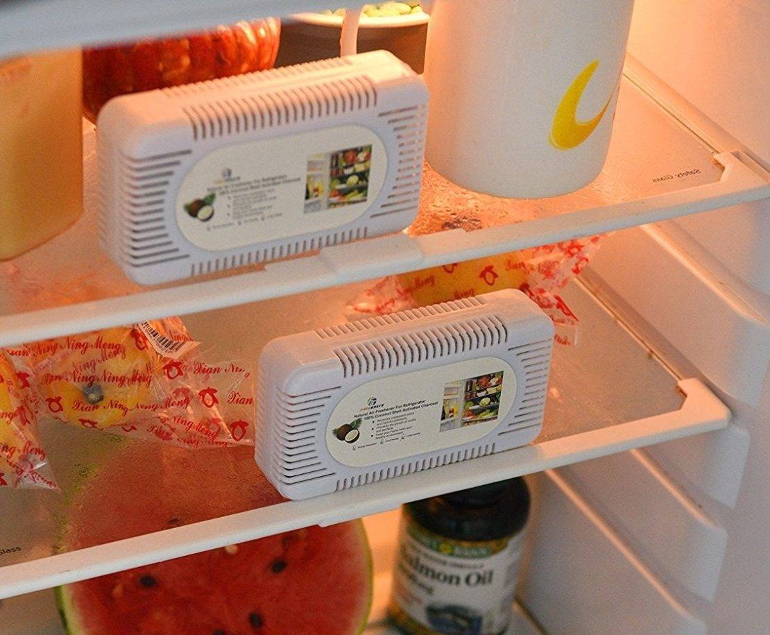 - Для большого холодильника недостаточно будет одного поглотителя. Разместите хотя бы два: один сверху, второй на нижней полке.