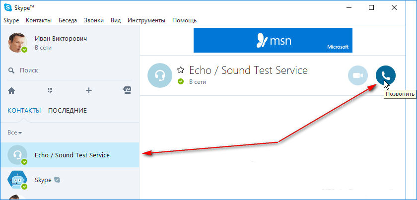 В контактах по умолчанию находится Echo/Sound Test Service. С помощью этого сервиса можно проверить наличие звука и видео в программе.