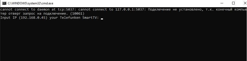 Если окно не вышло, попробуйте включить режим отладки в операционной системе на телевизоре. Путь такой: Настройки -> Приложения -> Разработка -> Отладка по USB (установить флаг) или такой — Меню -> Настройки -> Для Разработчиков -> Отладка по USB.