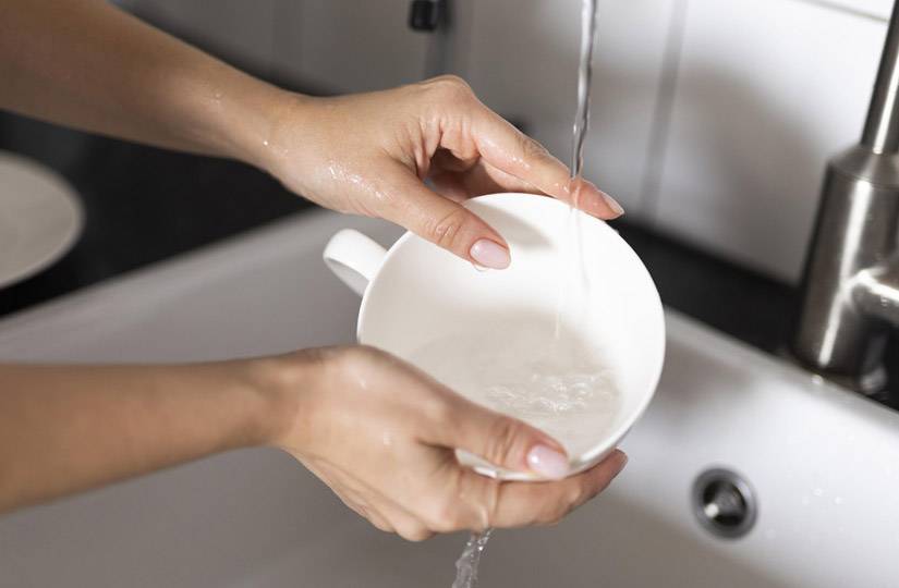 Разумеется, гораздо проще каждый день следить за посудой, чтобы она не становилась слишком грязной. Поэтому чашку следует тщательно мыть после каждого чаепития кухонной губкой.