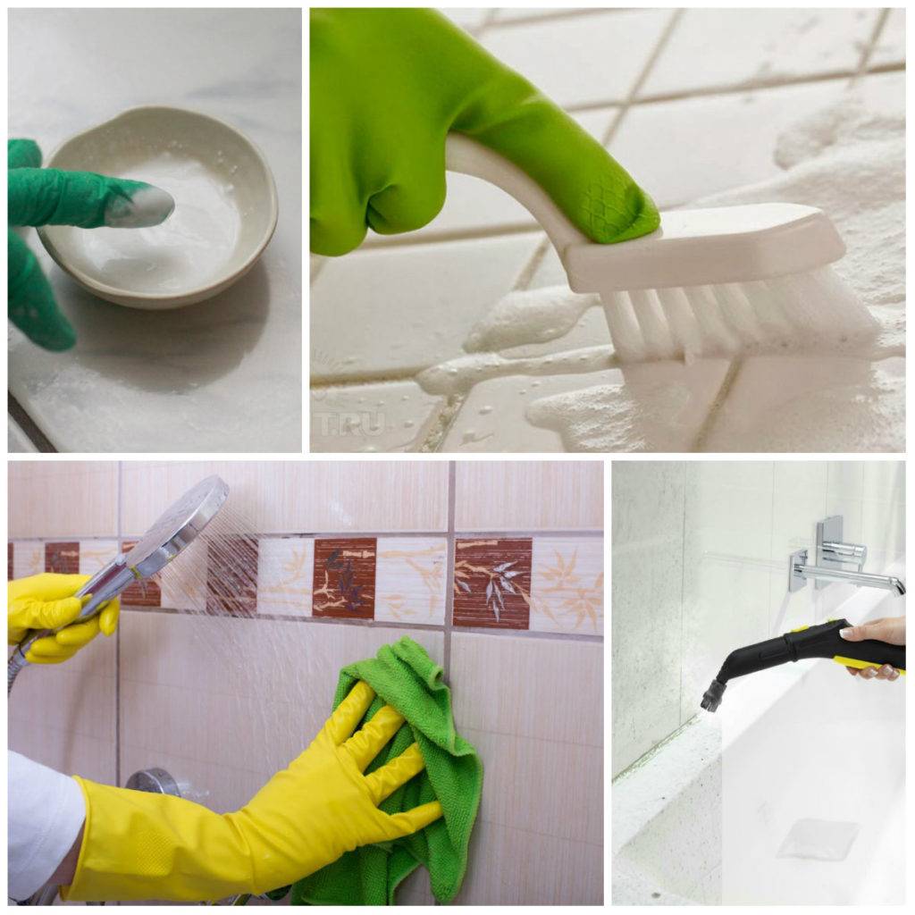 Используя указанные средства, удается вернуть сантехническому изделию чистоту, блеск и белизну. Особенностью уборки в ванной комнате является необходимость устранения плесени, которая считается часто встречающейся проблемой. Характерные пятна можно заметить на швах между кафелем. Убрать плесень помогает как сода, так и лимонная кислота (C6H8O7).