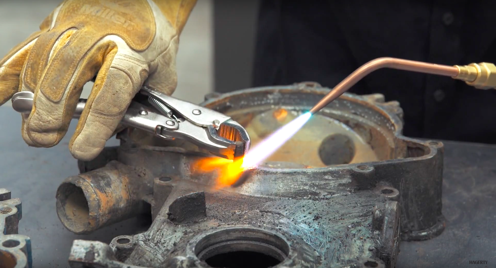 - Если расположение крепежа позволяет, можно нагреть его газовой горелкой для того, чтобы металл стал более податливым, а ржавчина с грязью превратились в пепел.