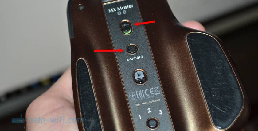 Включите мышку. Дальше нужно активировать режим подключения. Там для этого должна быть кнопка. На моей мышке она подписана как «Connect». Ее нужно нажать (возможно, нажать и подержать). Должен начать активно мигать индикатор. Процесс активации режима подключения конечно же может отличаться в зависимости от производителя и модели мышки. Смотрите инструкцию.