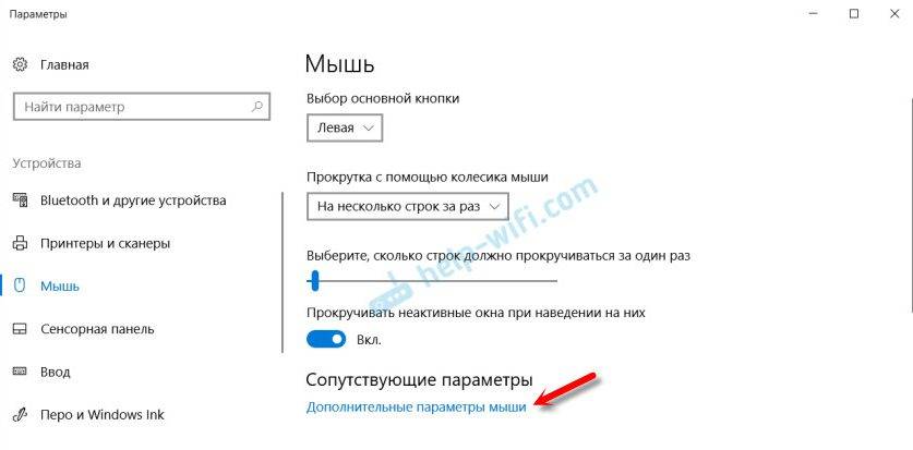 Открываем Пуск (или поиск) и пишем “мышь”. Открываем “Параметры мыши”.