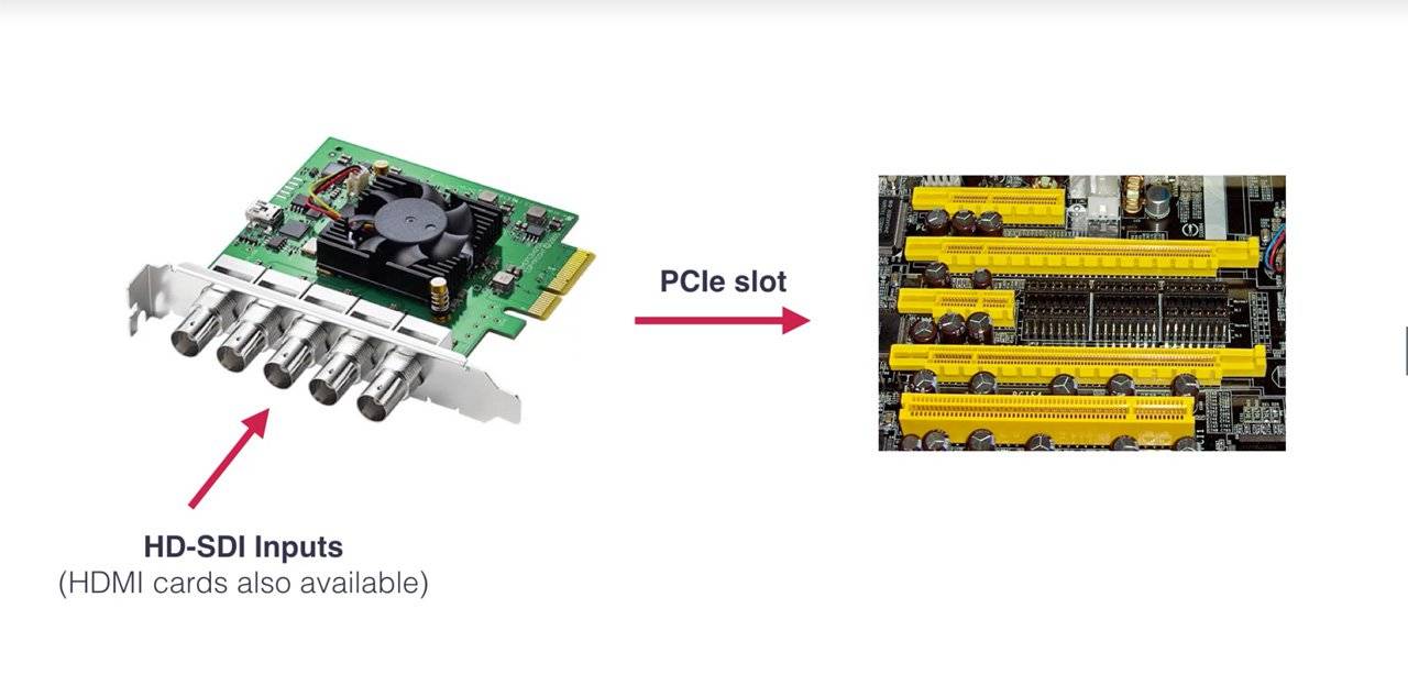 Новейшие карты захвата способны захватывать не один, а даже до 8 сигналов Full HD одновременно. Это означает, что с помощью программного обеспечения, такого как vMixили Wirecast, вы можете превратить ваш компьютер в многоканальный профессиональный видеомикшер.