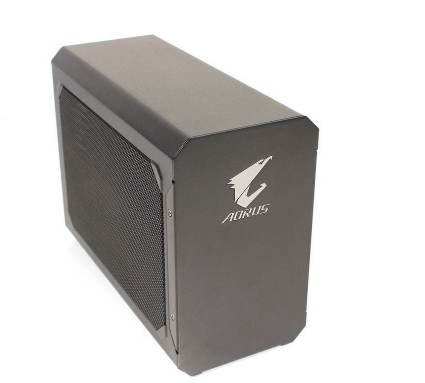 Aorus GTX 1080 Gaming Box – представляет собой Док станцию для ноутбука или компьютера, оснащенную видеокартой Nvidia GTX 1080. Пользователю не требуется производить каких-либо настроек, оборудование полностью готово к работе. Дополнительно укомплектована БП мощностью 450 Ватт. Использует интерфейс подключения «Thunderbolt» обеспечивая скорость передачи данных до 40 Гбит/сек.