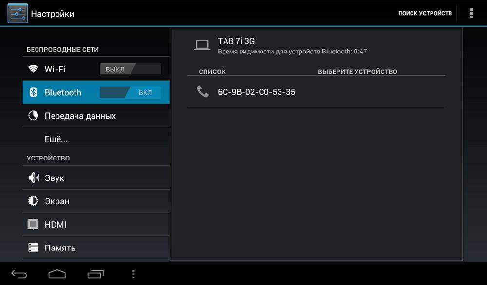 4. Запустить поиск Bluetooth-устройств на планшете или смартфоне;